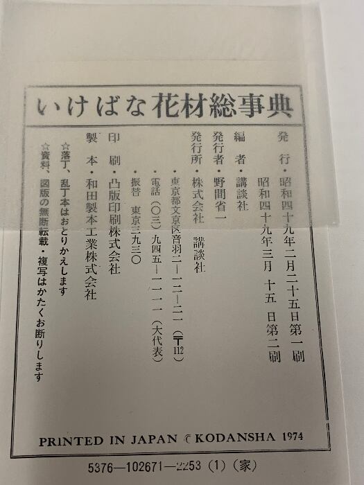 タイトル:作例、文献付 いけばな花材総事典 講談社 昭和49年