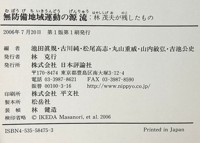 タイトル:無防備地域運動の源流 林茂夫が残したもの 日本評論社 池田 眞規