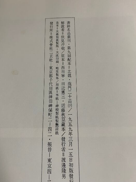 タイトル:北魏 龍門二十品 下 書跡名品叢刊9 二玄社