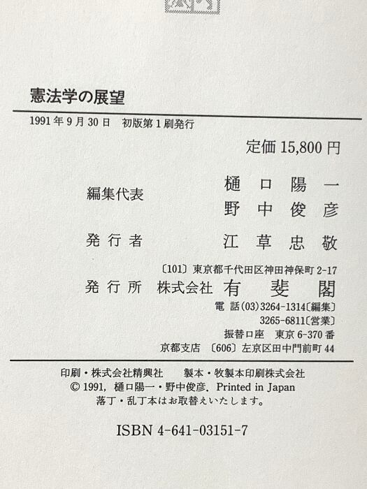 タイトル:憲法学の展望 小林直樹先生古稀祝賀 有斐閣 樋口 陽一