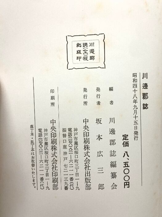 タイトル:川邉郡誌 昭和48年 中央印刷株式会社