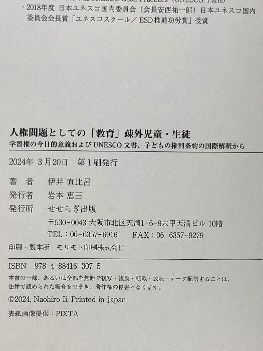 タイトル:人権問題としての「教育」疎外児童・生徒 学習権の今日的意義およびUNESCO 文書、子どもの権利条約の国際解釈から せせらぎ出版 伊井 直比呂