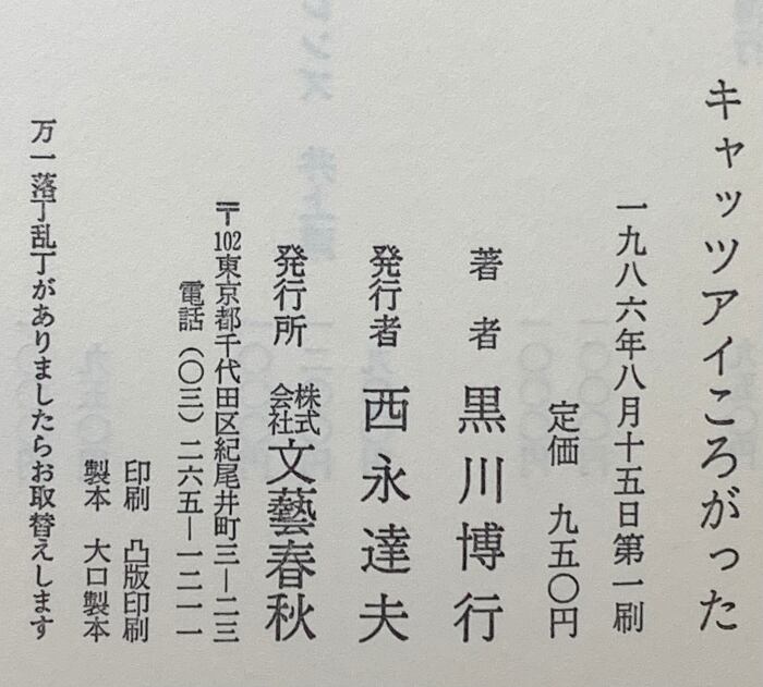 キャッツアイころがった 文藝春秋 黒川 博行