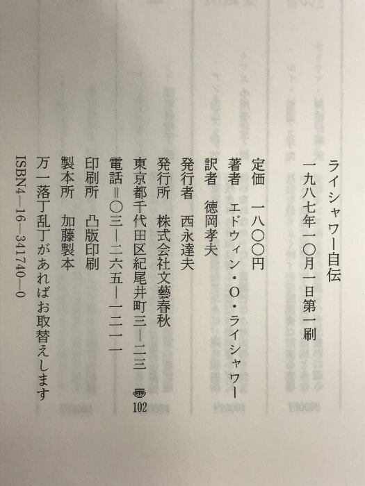 ライシャワー自伝 文藝春秋 エドウィン・O. ライシャワー