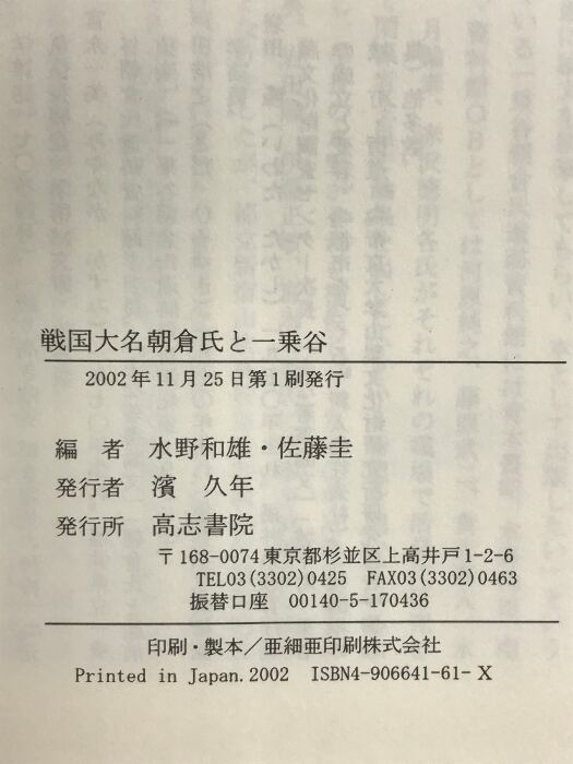 タイトル:戦国大名朝倉氏と一乗谷 (環日本海歴史民俗学叢書 11) 高志書院 水野 和雄