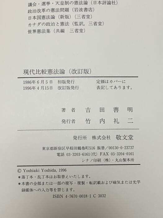 タイトル:現代比較憲法論 敬文堂 吉田善明