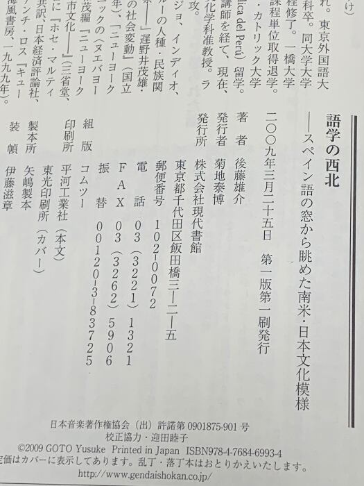 タイトル:語学の西北: スペイン語の窓から眺めた南米・日本文化模様 現代書館 後藤 雄介