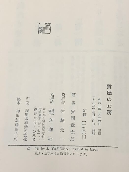 タイトル:質屋の女房 新潮社 安岡 章太郎