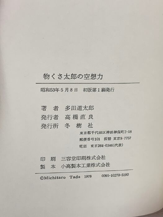 タイトル:物くさ太郎の空想力 冬樹社 多田 道太郎