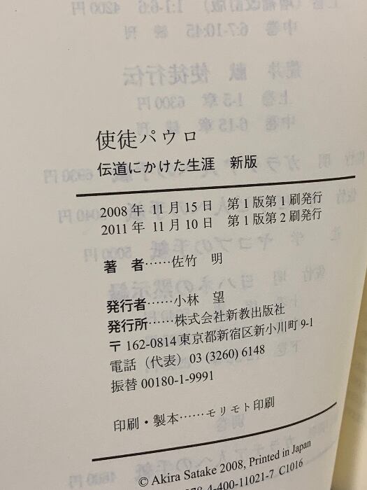 タイトル:使徒パウロ 新版―伝道にかけた生涯 新教出版社 佐竹 明