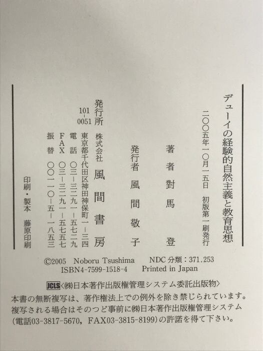 デューイの経験的自然主義と教育思想 風間書房 對馬 登