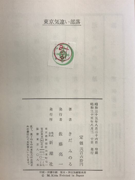 東京気違い部落 新潮社 きだ・みのる 1960年