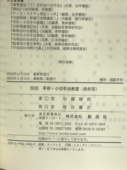 タイトル:図説手形・小切手法教室 創成社 加藤 勝郎