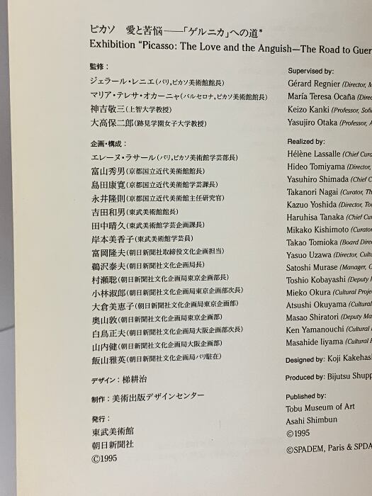 図録 ピカソ 愛と苦悩 「ゲルニカ」への道 1995-96 東武美術館 朝日新聞社
