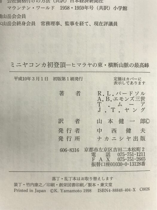 タイトル:ミニヤコンカ初登頂: ヒマラヤの東・横断山脈の最高峰 ナカニシヤ出版 R.L.バードソル