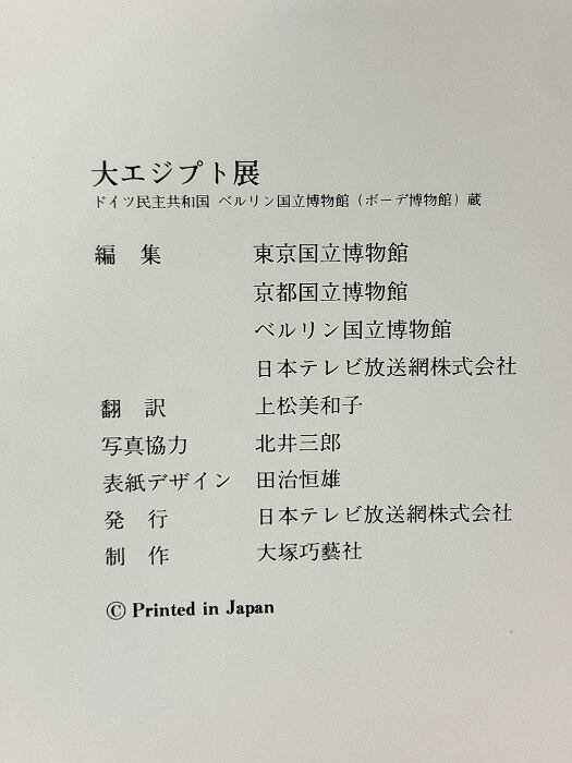 タイトル:図録 大エジプト展 ドイツ民主共和国 ベルリン国立博物館(ボーテ博物館)蔵 日本テレビ放送網株式会社