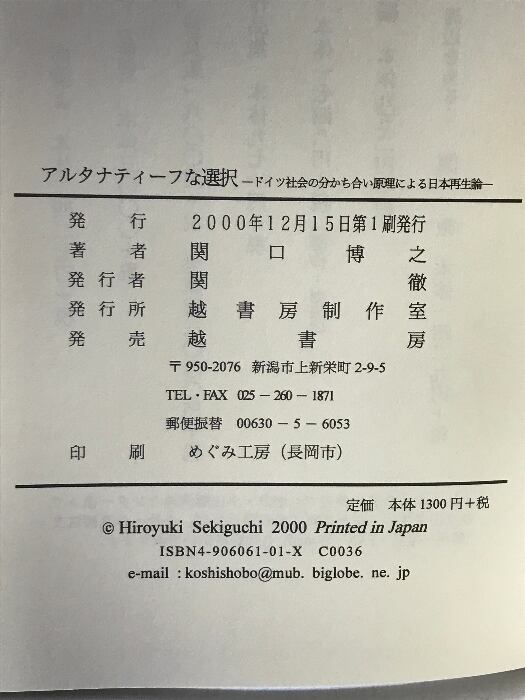 アルタナティーフな選択: ドイツ社会の分かち合い原理による日本再生論 越書房 関口 博之