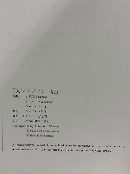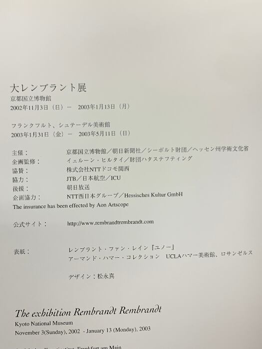 図録 Rembrandt Rembrandt 大レンブラント展 2002-2003 シーボルト財団