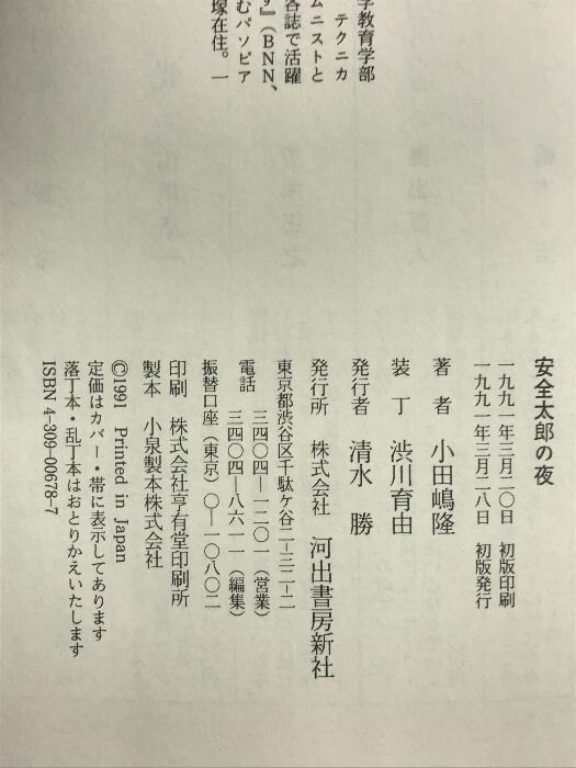 タイトル:安全太郎の夜 河出書房新社 小田嶋 隆