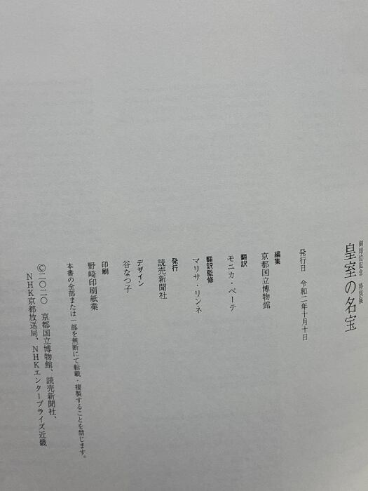 タイトル:図録 皇室の名宝 2020 京都国立博物館