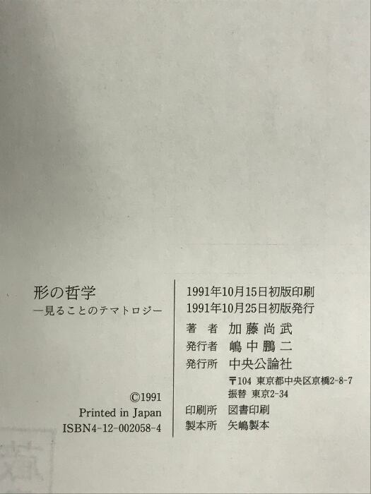 タイトル:形の哲学: 見ることのテマトロジー 中央公論新社 加藤 尚武