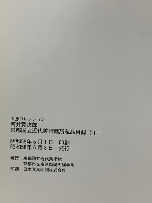 図録 河井菅次郎 川勝コレクション 京都国立近代美術館 所蔵目録1 昭和58年 京都国立近代美術館