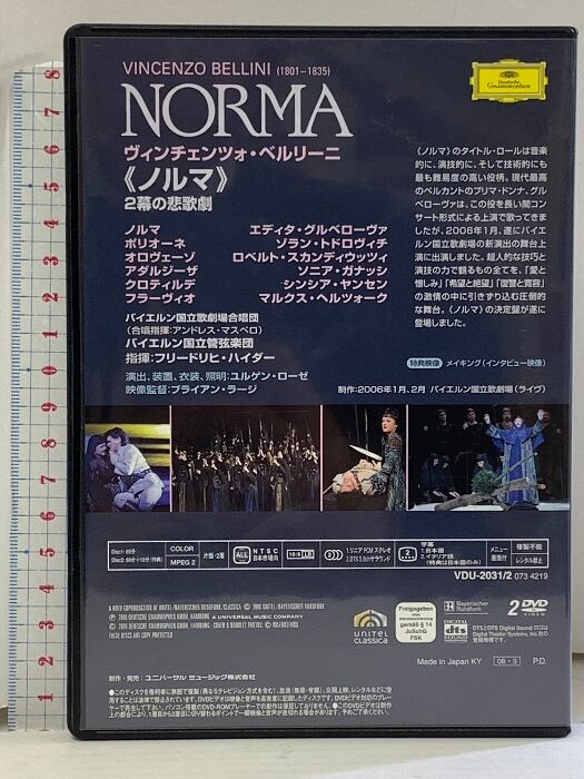 ベルリーニ 歌劇《ノルマ》ハイダー/グルベローヴァ ユニバーサル・ミュージック フリードリヒ・ハイダー DVD2枚組
