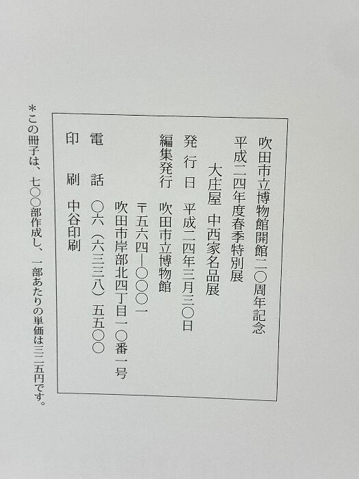 タイトル:図録 大庄屋 中西家名品展 吹田市立博物館20周年記念 平成24年度春季特別展 2012 吹田市立博物館