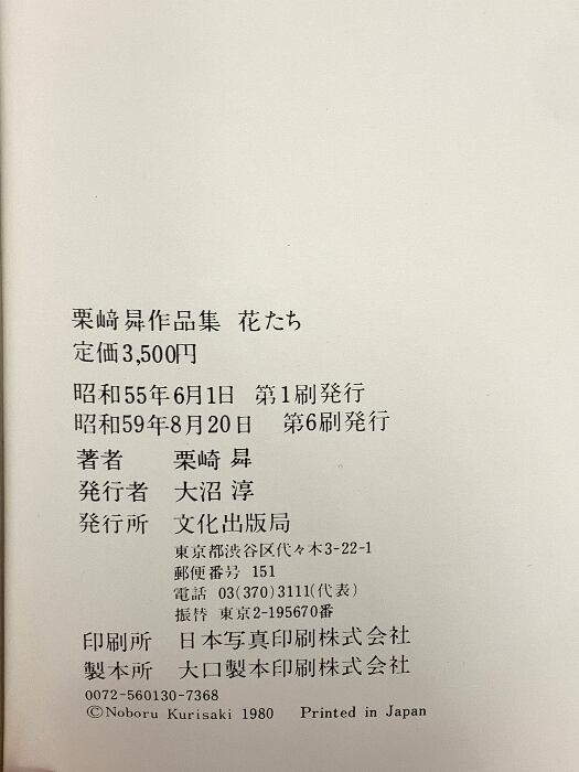 図録 花たち 栗崎昇作品集 昭和59年 文化出版局