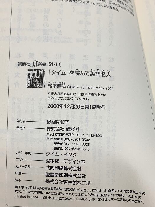 タイムを読んで英語名人 (講談社+α新書 51-1C) 研究社出版 松本 道弘