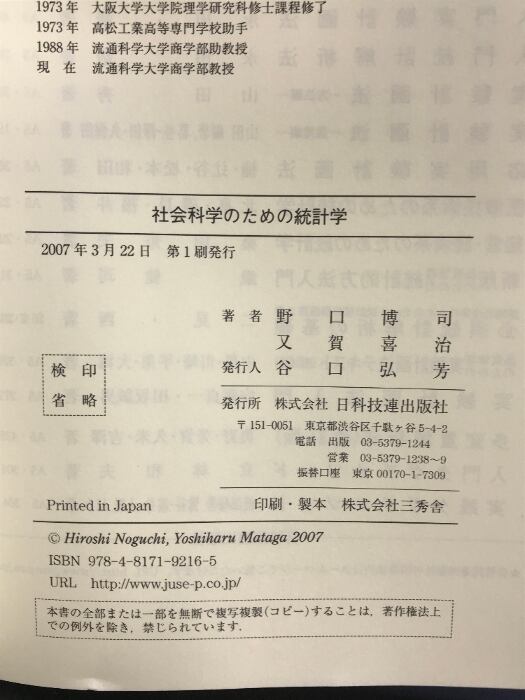 社会科学のための統計学 日科技連出版社 野口 博司
