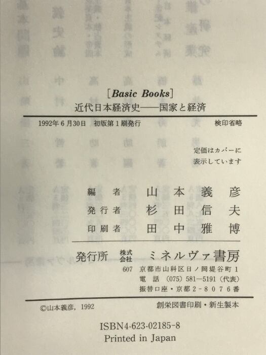 近代日本経済史: 国家と経済 (BASIC BOOKS) ミネルヴァ書房 山本 義彦