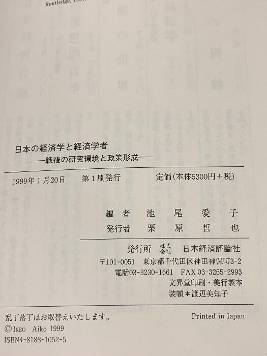タイトル:日本の経済学と経済学者: 戦後の研究環境と政策形成 日本経済評論社 池尾 愛子