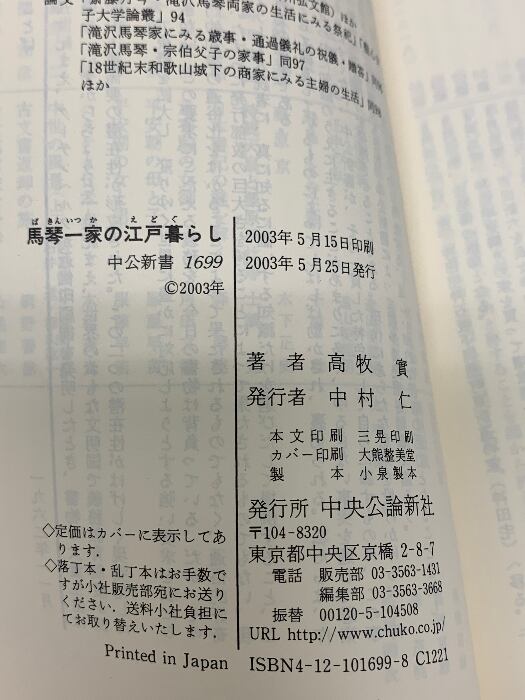 馬琴一家の江戸暮らし (中公新書 1699) 中央公論新社 高牧 實