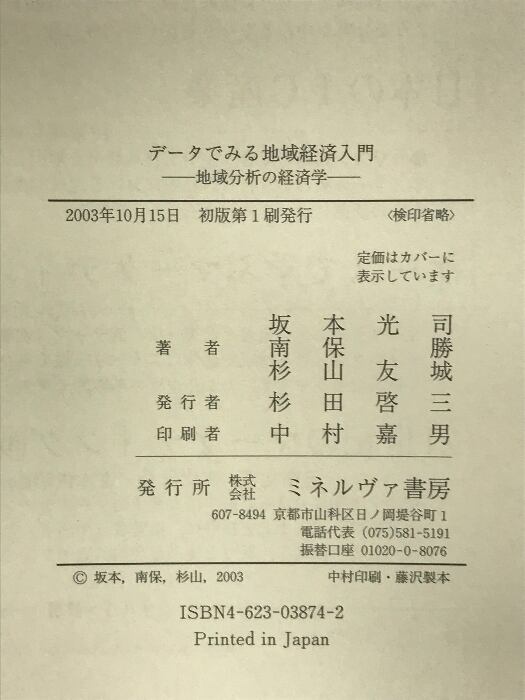 タイトル:データでみる地域経済入門: 地域分析の経済学 ミネルヴァ書房 坂本 光司