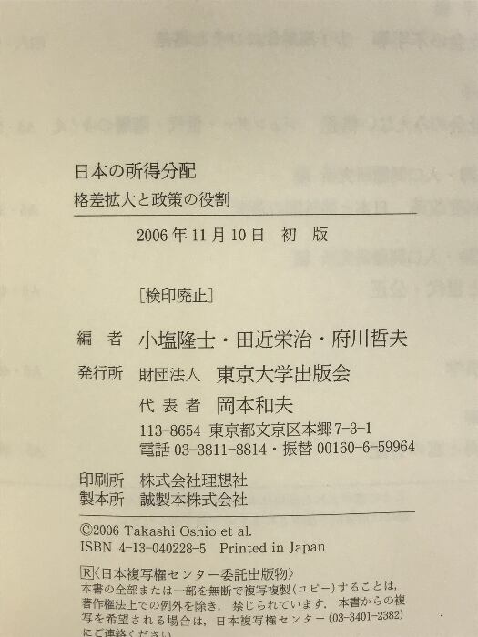 日本の所得分配: 格差拡大と政策の役割 東京大学出版会 小塩 隆士