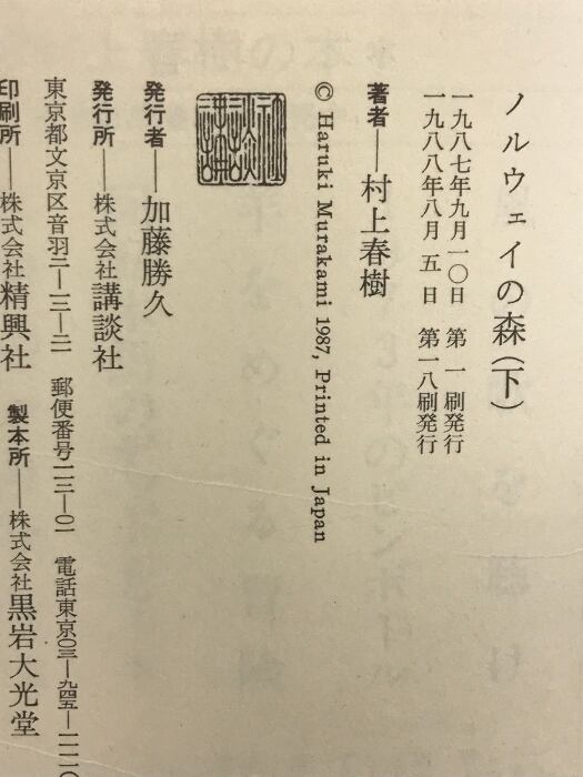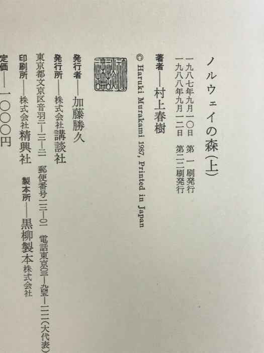 タイトル:ノルウェイの森 (上・下巻/全2冊セット) 講談社 村上春樹