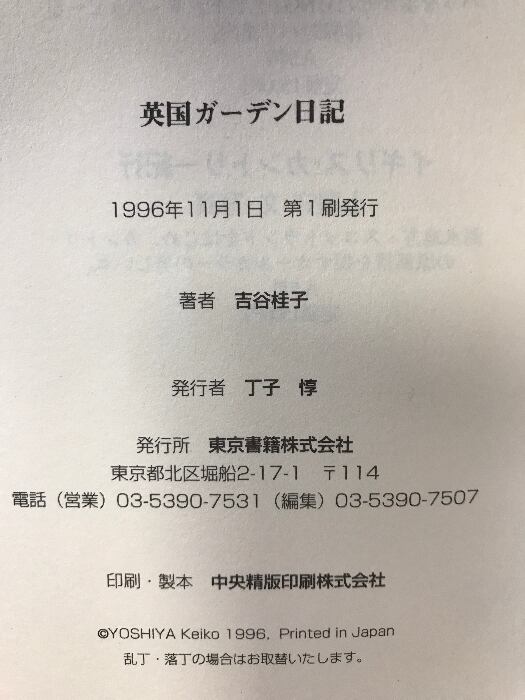 タイトル:英国ガーデン日記 東京書籍 吉谷 桂子