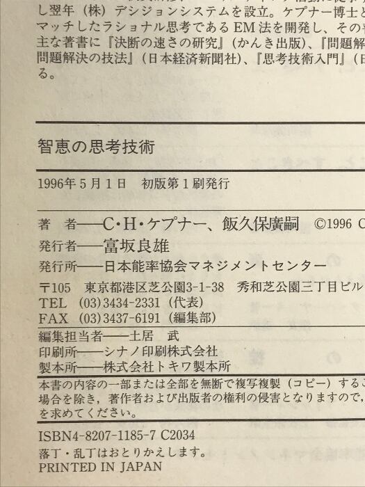 タイトル:智恵の思考技術 日本能率協会マネジメントセンター C.H.ケプナー