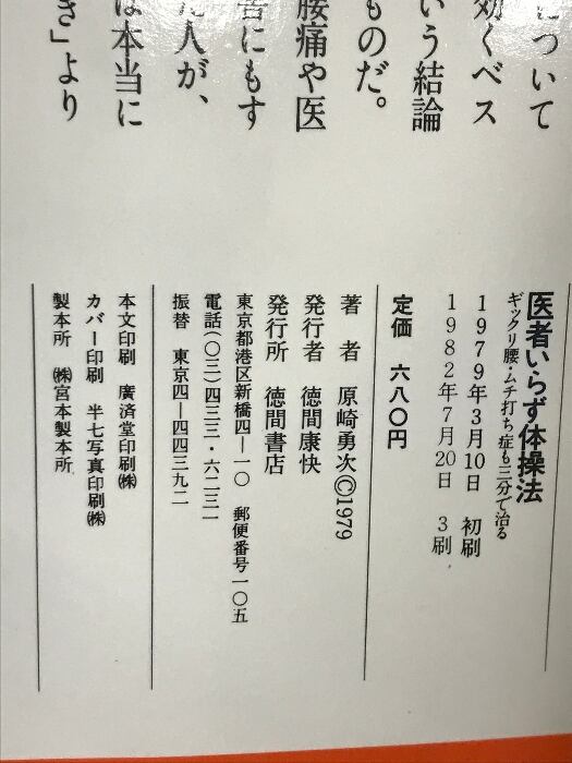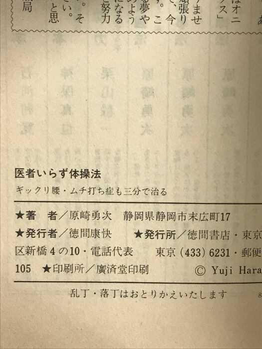 医者いらず体操法: ギックリ腰・ムチ打ち症も三分で治る (トクマブックス) 徳間書店 原崎 勇次
