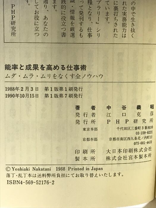 タイトル:能率と成果を高める仕事術: ムダ・ムラ・ムリをなくす全ノウハウ (PHPビジネスライブラリー A- 230) PHP研究所 中谷 義昭