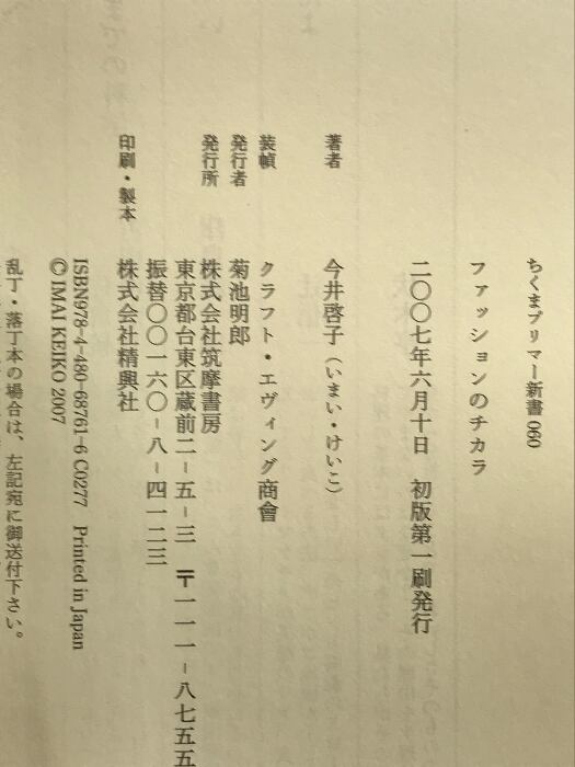 タイトル:ファッションのチカラ (ちくまプリマー新書 60) 筑摩書房 今井 啓子