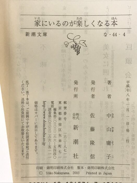 家にいるのが楽しくなる本 (新潮文庫 な 44-4) 新潮社 中山 庸子
