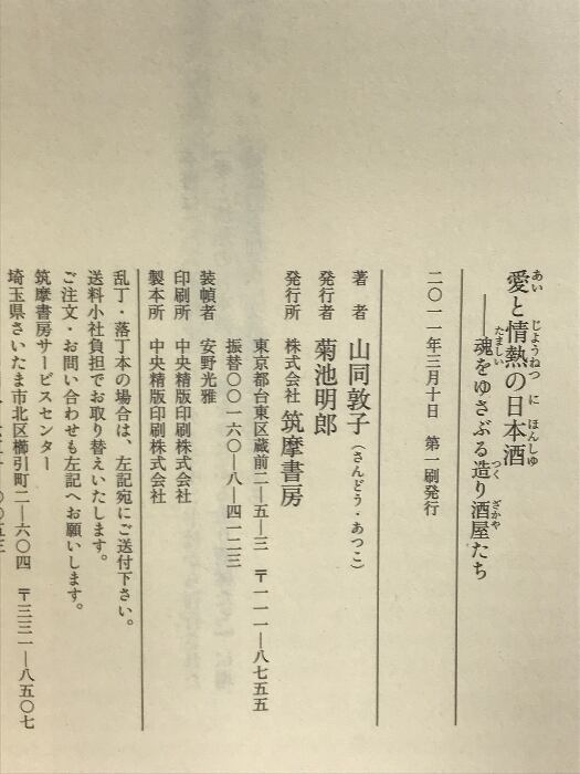 愛と情熱の日本酒 魂をゆさぶる造り酒屋たち (ちくま文庫) 筑摩書房 山同 敦子