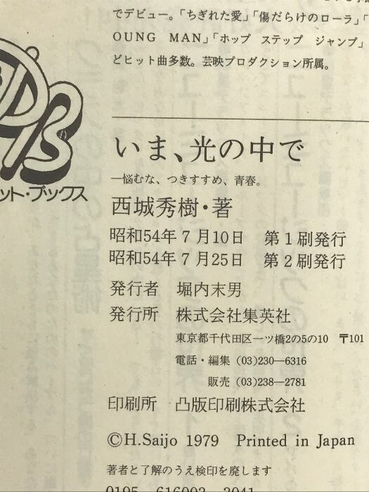 タイトル:いま、光の中で―悩むな、つきすすめ、青春 (明星デュエット・ブックス) 集英社 西城秀樹