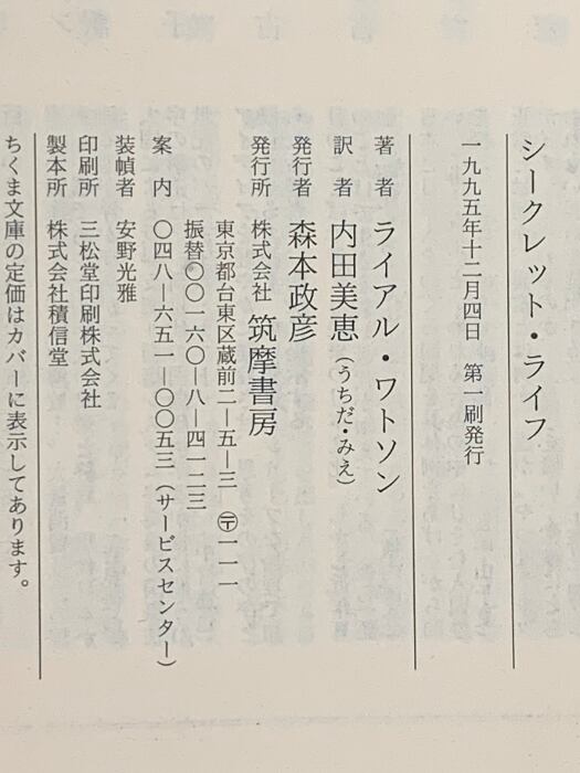 シークレット・ライフ (ちくま文庫 わ 4-5) 筑摩書房 ライアル ワトソン