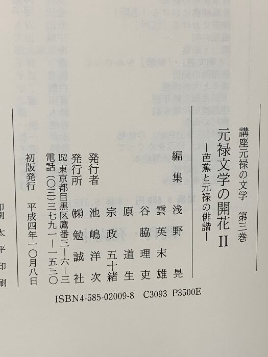タイトル:元禄文学の開花 2 (講座元禄の文学 3) 勉誠社(勉誠出版) 浅野 晃