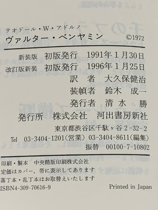 ヴァルター・ベンヤミン 改訂版新装 (河出・現代の名著) 河出書房新社 テオドール・W. アドルノ