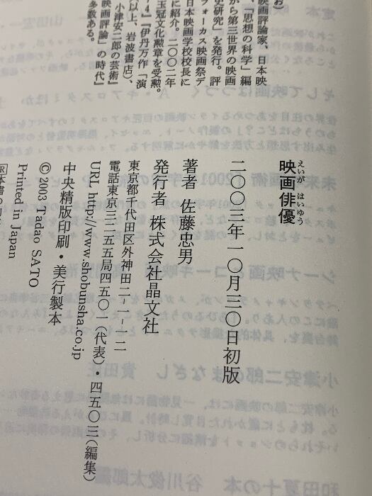 映画俳優 晶文社 佐藤 忠男
