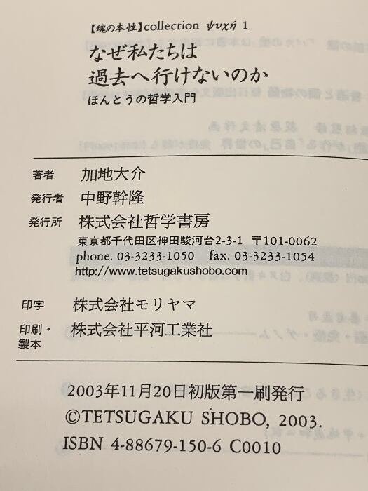 タイトル:なぜ私たちは過去へ行けないのか: ほんとうの哲学入門 (魂の本性 1) 哲学書房 加地 大介